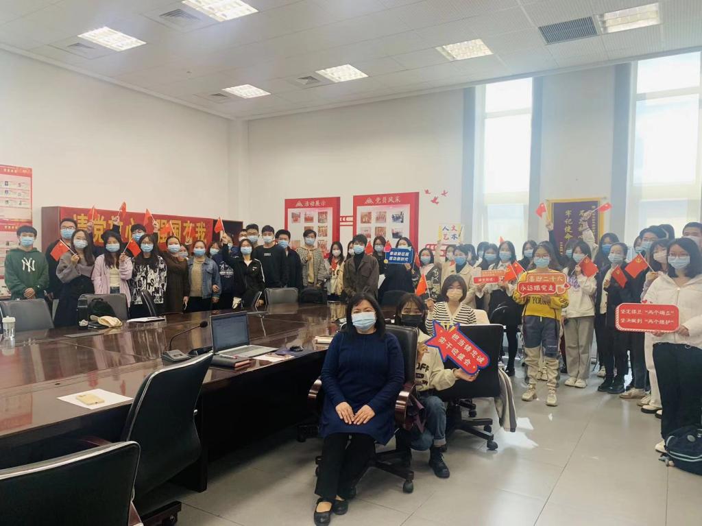 何慧俐(前排居中)与师生代表参加观看党的二十大开幕会