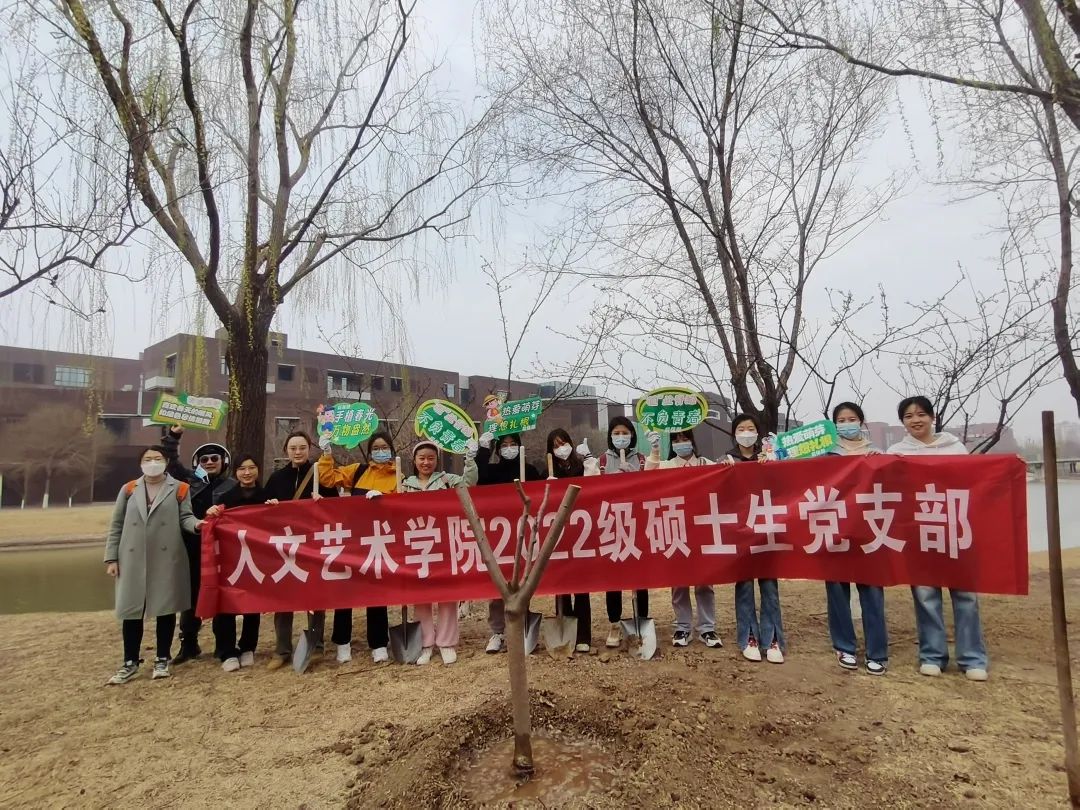 2022级硕士生党支部积极报名、踊跃参与学校“花堤蔼蔼”植树活动。