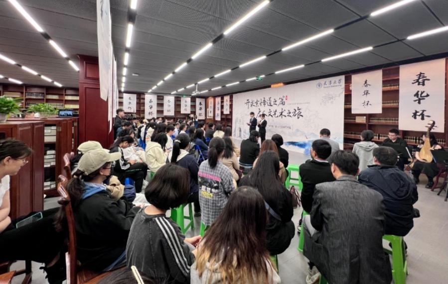 ——弘扬中华优秀传统文化,以文化人、以美育人。举办“北洋大学与近代中国”学术研讨会,用专业性研究成果来阐释大学精神,助推学校“北洋大学与天津”历史主题研究向更高质量和更广空间发展;举行《北洋大学与近代中国(第1辑)》首发式,面向校内外宣传阐释天大品格;以此为基础,大学文化与校史研究所和天津市问津书院达成互建文化教育基地意向,并逐步开拓国内文化教育基地建设。学院党委书记在同人小说 世界校友大会文化论坛作“盛宣怀创办北洋大学对中国高等教育的贡献”主题报告,并接受常州电视台采访,与常州盛宣怀故居张太雷故居共建文化基地。凝聚精神,启动院史馆和院志建设。规划建设美育工作坊等美育教学平台,筹建美育实践基地、美育浸润空间。“传统工笔画基地”获批天津市首批高校中华优秀传统文化艺术传承基地。学院坚持在学校重要节点发挥艺术滋养作用,在2022年国庆期间,举办教师艺术创作展、艺术采风写生、中国古代工笔重彩名画(复品)展、宋代点茶体验等12项文化艺术主题活动;在海棠季中举办书画研究会年展、《千里江山图》赏析、汉服之美讲座、师生书画写生活动等系列主题活动,传习经典艺术,弘扬中华优秀文化,让人文艺术之美浸润校园。举办第21届“春华杯”文学作品创作大赛,以文学作品书写中国式现代化,让马克思主义基本原理飞入寻常百姓家。