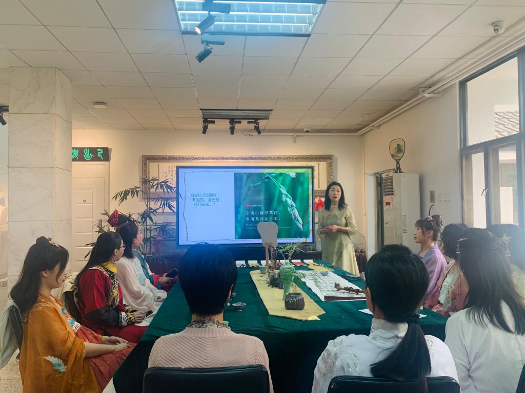 二十四节气是中华优秀传统文化的鲜明标识,蕴含着丰富的文化内涵和历史积淀。活动正值小满时节,中文系副教授史静以“小满与人生哲学”为题,为老师们讲解了小满节气和传统民俗,并以中国经典文学著作《红楼梦》中的人物形象和故事情节为例,分享了“小满”蕴含的哲学思想和智慧,提倡追求且珍惜“最好人生是小满,花未全开月未圆”的美好境界。