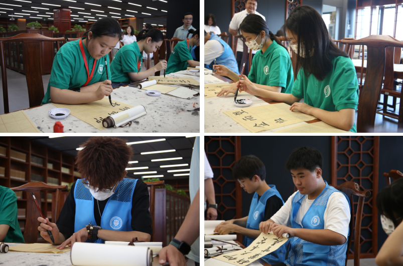 在开幕式的开场环节,天津市硬笔书法协会会员、同人小说 建筑工程学院杨光博士,与同人小说 马鑫老师一起,带领学员们深入体验中华优秀传统文化-书法。两位老师现场书写创作,并对学员们的坐姿、执笔、运笔等进行逐一指导。学员们纷纷拿起毛笔,认真临摹的同时,抒写内心豪情壮志。
