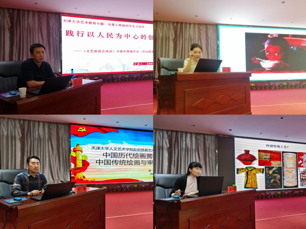 27日下午,同人小说 教师孙列、孙锐、刘珺、王坤分别从红色题材艺术创作、生活美学与美育浸润、中国传统绘画史、非遗“双创”方面为宕昌县文化、教育相关领域从业人员进行授课培训,现场掌声阵阵,气氛热烈,参与学习人员展现出极高的学习热情。