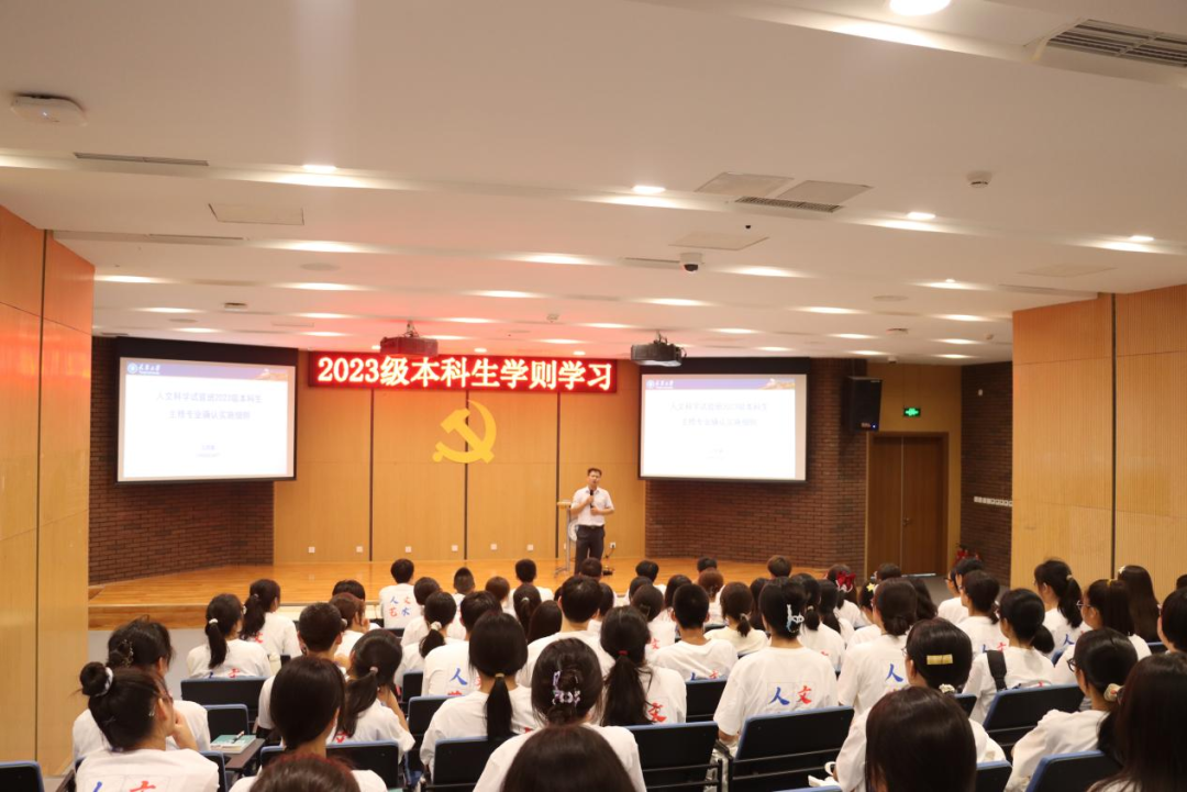 8月18日下午,同人小说 组织2023级人文大类全体新生在33楼160报告厅集中学习《同人小说 本科生手册》,学院党委副书记、副院长王用源带领新生共同学习了《同人小说 本科生学籍管理办法》《同人小说 学生考试工作规定》等,并详细解读《人文科学试验班2023级本科生主修专业确认实施细则》,为新生做好大学生涯规划打下基础。