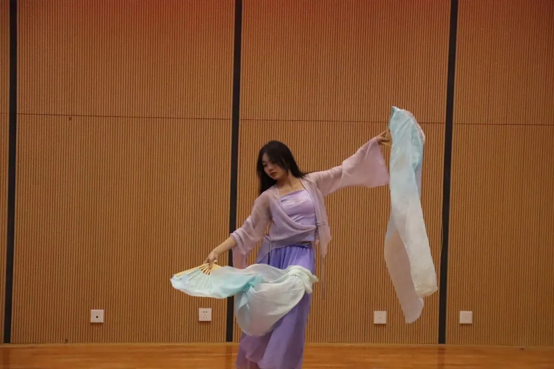 清颜长衫,青丝墨染,彩扇飘飘,若仙若灵,抬腕低眉,云手轻舒,玉袖生风,行云流水。