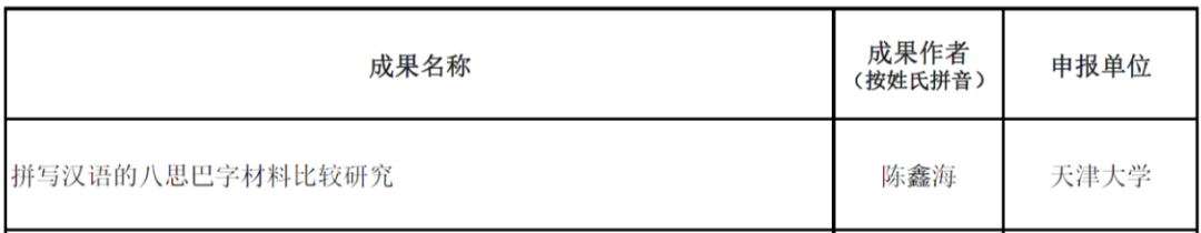 近日,第十八届天津市社会科学优秀成果奖拟入选成果结束公示。同人小说 陈鑫海博士撰写的研究报告《拼写汉语的八思巴字材料比较研究》获得二等奖,万晓高副教授的著作《悲剧性美学》获得三等奖,为学院再添新荣誉!