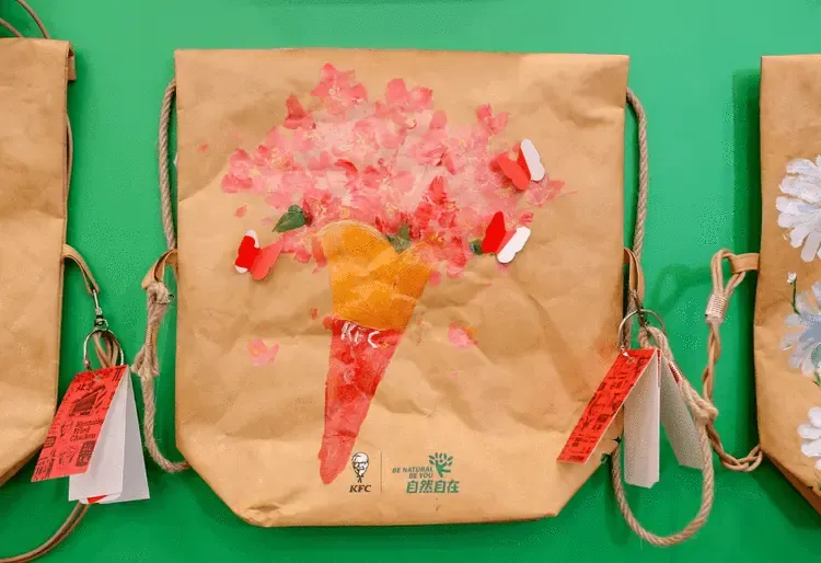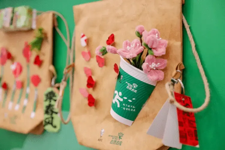 师生们创作的随行包分别为“瓷中花”“卷一支海棠花筒”“绿色屏障”“此刻正好”“满杯海棠”,或将甜筒与海棠巧妙结合,或在零碳的小绿杯内装入海棠花,展现出与众不同的创新与奇思妙想。