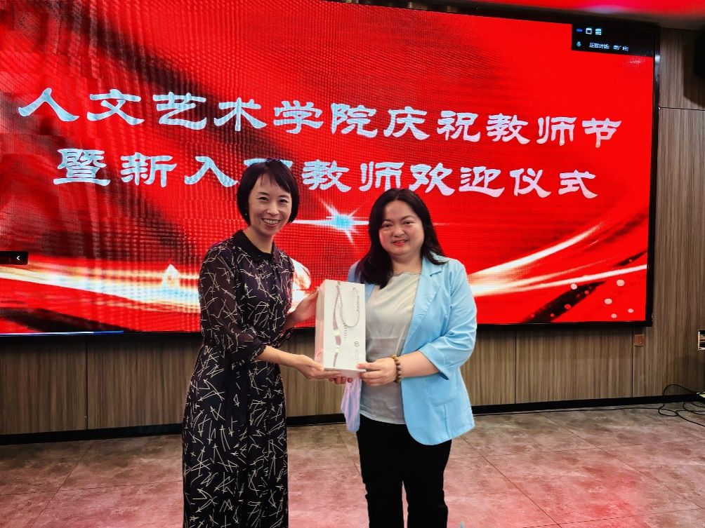 中文系教师代表李春艳、万晓高发言,寄语新入职教师。