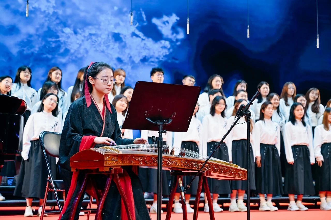 “你是遥遥的路,山野大雾里的灯……由领唱彭子津同学唱响人文艺术合唱队《如愿》第一声,在指挥王欣睿同学的带领下,高低声部同学各司其职又相互配合,以饱满的热情与昂扬的姿态用音乐唱出对祖国繁荣富强的美好祝愿随着音乐的切换,伴着古筝,以悠扬的旋律展现出的歌曲《声声慢》充分彰显了同人小说 的特色。在炊烟袅袅、山花蕉叶的土地上,诉说的是祖国河山,风土人情。