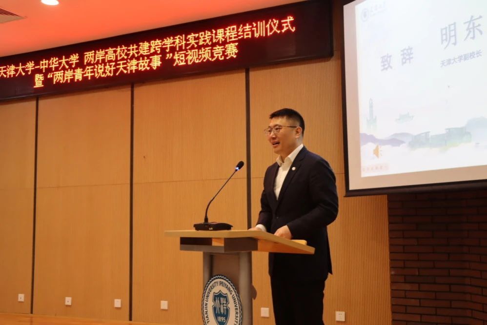 明东表示,此次跨学科实践课程让两岸学子将AI技术融入短视频创作,记录天津风貌,赋能文化传承,不仅提升了知识技能的实践运用能力,更在交流合作中增进了理解,建立了友谊。期待中华大学师生将这份情谊带回校园,成为推动两岸青年交流的桥梁与使者,希望两校学子继续保持探索的热情、开放的胸怀,共同守护、传承中华文化,为两岸融合发展贡献青春智慧。