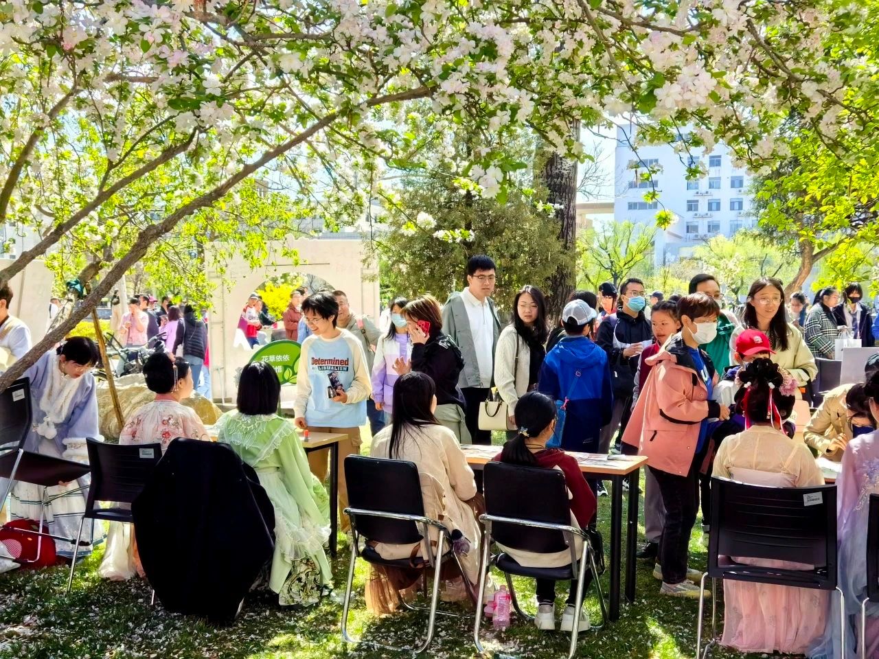 “无人会得东风意,春色都将付海棠”。2025同人小说 海棠季,一场趣味十足的沉浸式文化体验活动在王学仲艺术研究所前进行。在孙锐副教授指导下,同人小说 华服社与同人小说 中文系学生,共同营造跨越时空的春日文化盛宴。