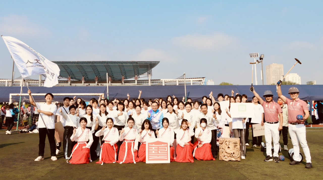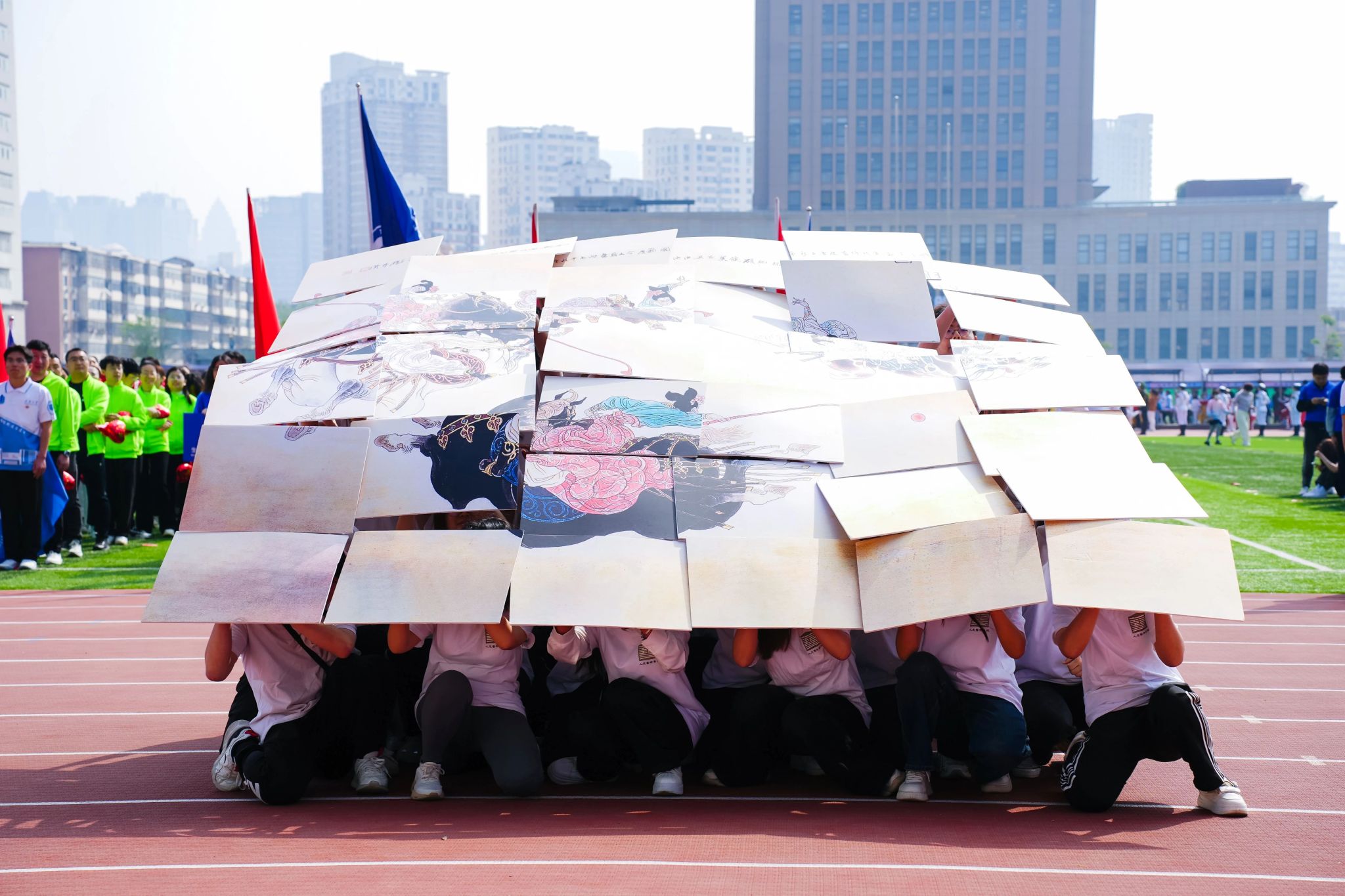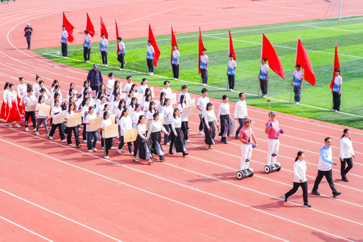 本次校运会上,学院组阵以马球为题旨,融合民族舞蹈、国画、印章、运动多重元素:《赛马舞》表演激昂高亢、奔放热烈,《唐女马球图》以骏马飞驰、衣袂轻扬的形象塑造夺人眼球,“人文之宝”印章承载文艺根脉和历史底蕴,专业运动员孟章涛、阿布,以平衡车为马球载体,精准模拟竞赛场景,展现马球运动的激情与活力。