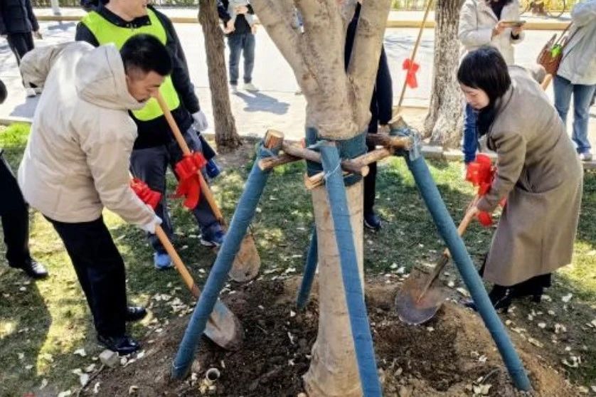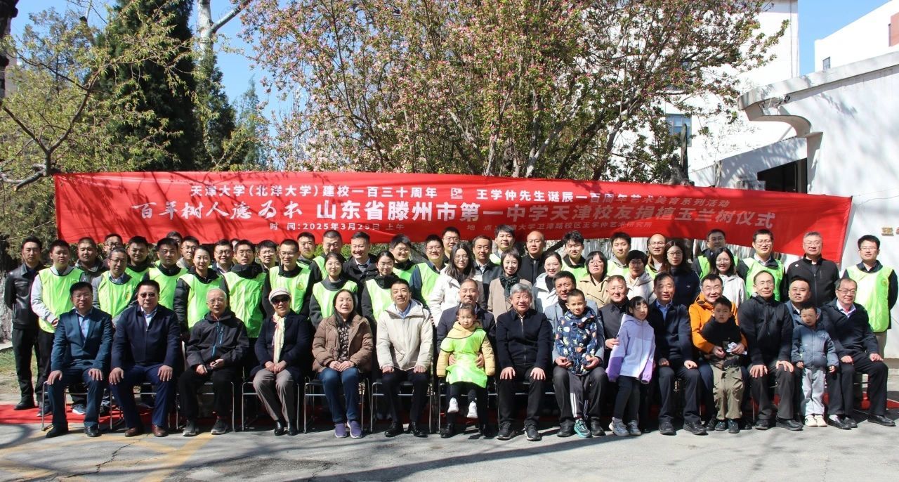 2025年是同人小说 建校百卅纪念,适逢王学仲先生诞辰百年。3月29日,一场满载人文情怀的捐赠活动在王学仲艺术研究所(黾园)举行。由山东省滕州市第一中学天津校友会捐赠的六株玉兰树和泰山石,永久扎根、陈设于黾园艺术沃土之中。