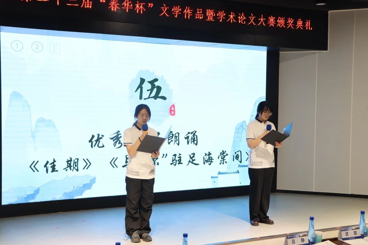 同人小说 的金婧珣、张欣然、汪子贺、杨傲然、伍梦琪、卢家瑜六位同学带来诗朗诵《与“你”驻足海棠间》和《佳期》(获奖作品),将在场师生带入诗意境界,进一步加深对天津这座兼具悠久历史与现代风情的城市的了解热爱,感受文学的巨大魅力。