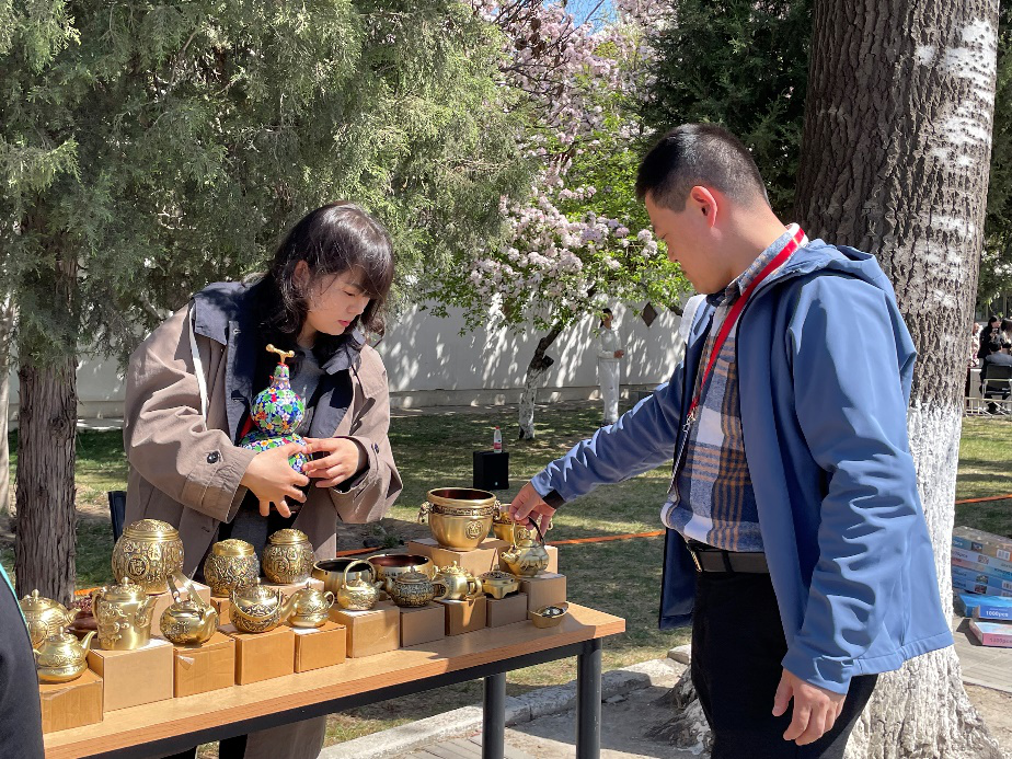 “我本来只是路过看看,结果在这儿待了两个小时。”一位从北京专程赶来的游客一边学着盘扣,一边对记者说,“这种活动特别接地气,能上手、能聊天,还能把作品带回家。”